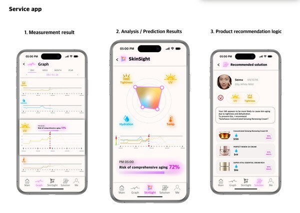 센서 패치는 피부의 미세한 움직임을 마이크로미터(μm) 단위로 감지하는 초정밀 센서를 장착해 속당김, 자외선 및 블루라이트, 온도, 수분 등 4가지 노화 요인을 동시에 측정한다. 측정된 피부 데이터는 블루투스 모듈을 통해 실시간으로 전송되며, AI 기반 모바일 애플리케이션은 24시간 동안의 생활 데이터를 종합해 복합 노화 인자를 모델링한다. 이를 통해 사용자는 개인별 피부 노화 가속 요인을 파악하고, 주름이나 탄력 저하가 나타날 위치와 정도를 예측해 맞춤형 스킨케어 루틴과 제품을 제안받는다.